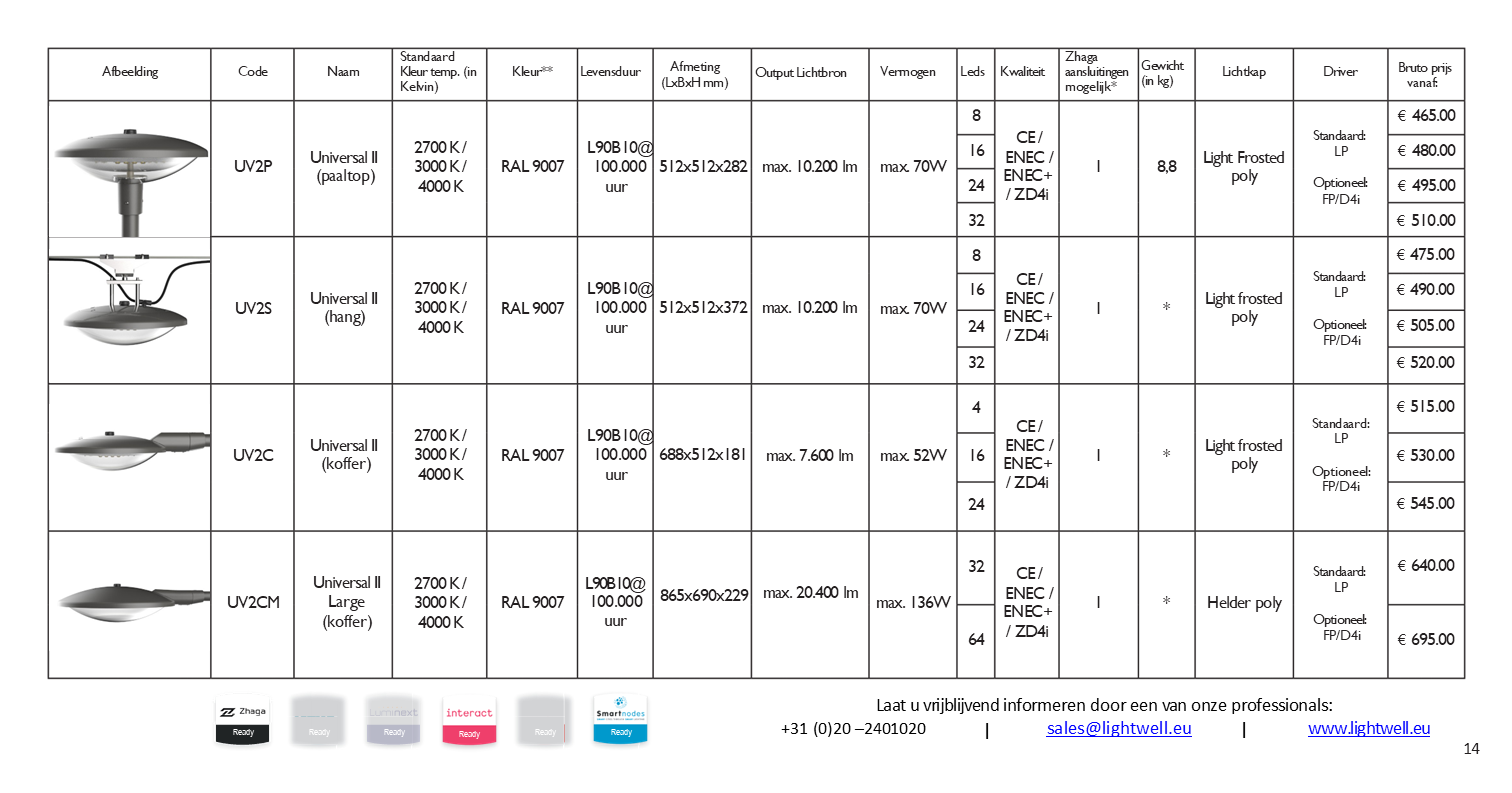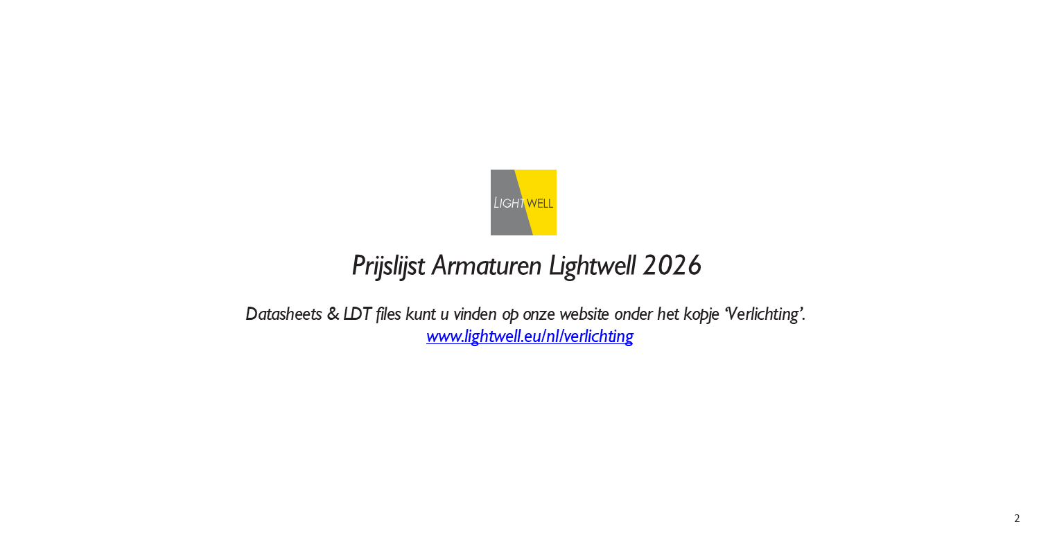 Prijslijst 2026 2026 Prijslijst download Voor meer informatie en offertes kunt u contact opnemen met sales@lightwell.eu of bellen naar 020-240 10 20